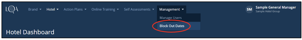 Click ‘Management’ and from the drop down menu select ‘Block Out Dates’: