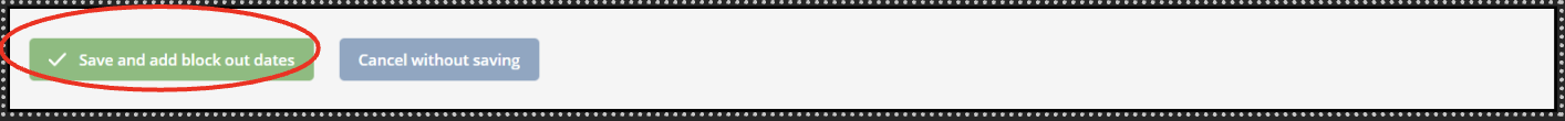 4. To complete the process, please click ‘Save and add block out dates’. Our admin team will then receive a notification of your request: