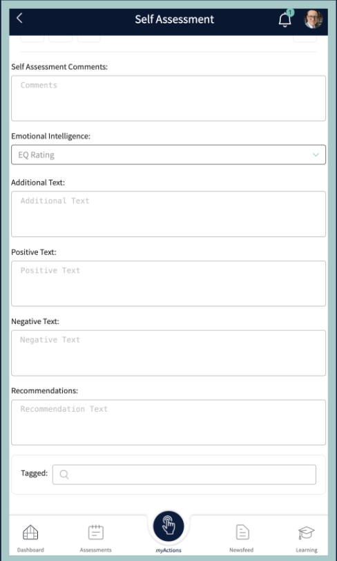 Fill in Self Assessment Comments. For example, note timing, general observals or operational context.