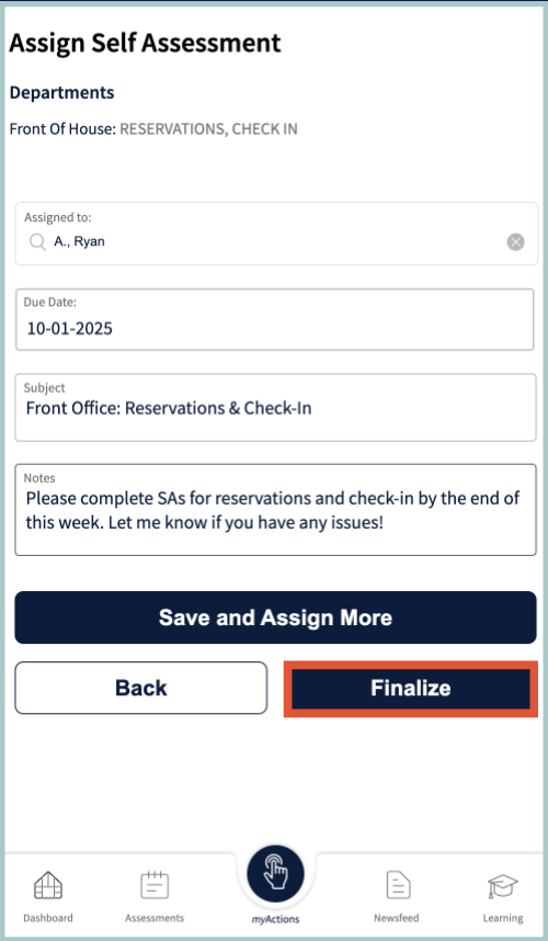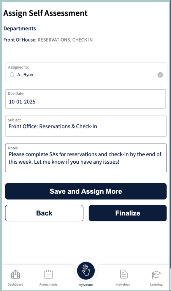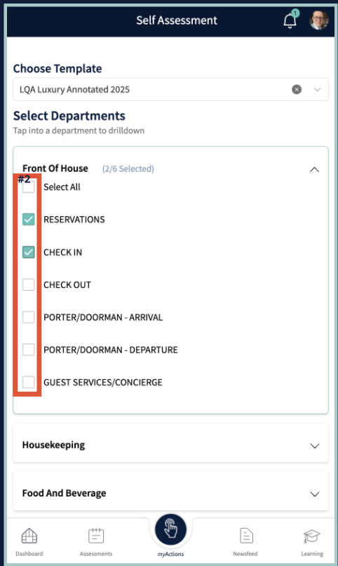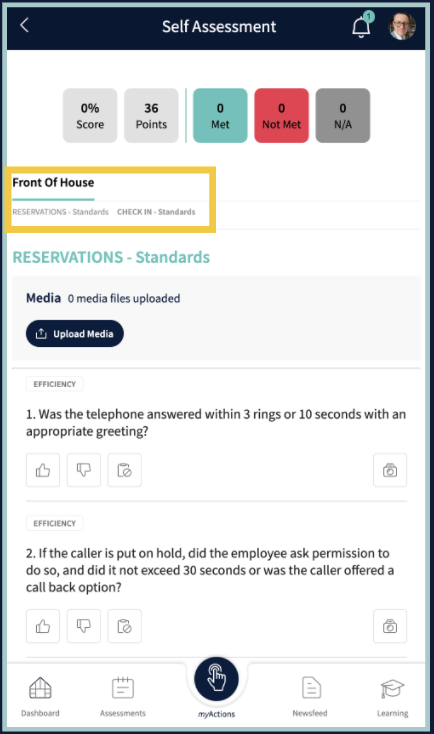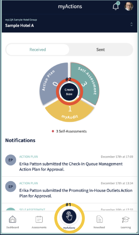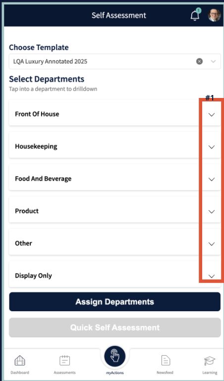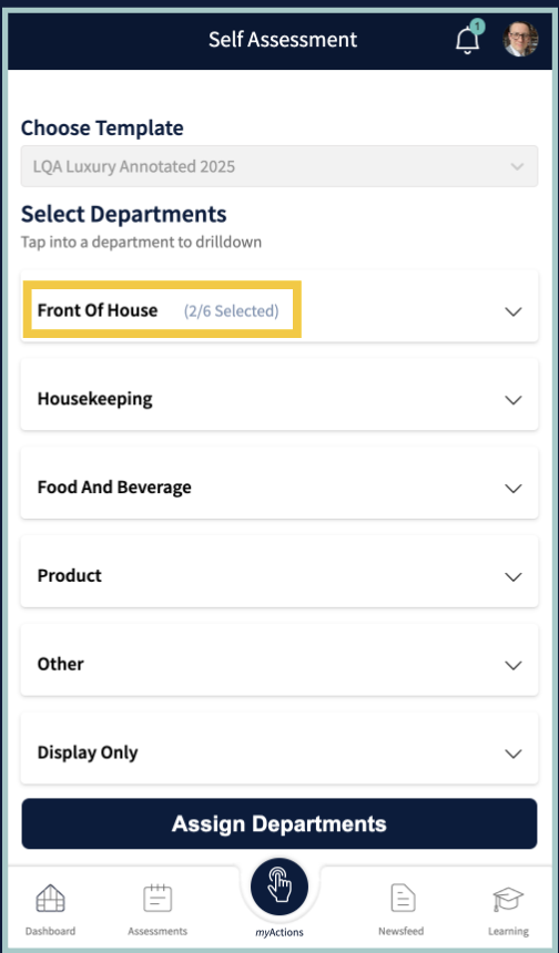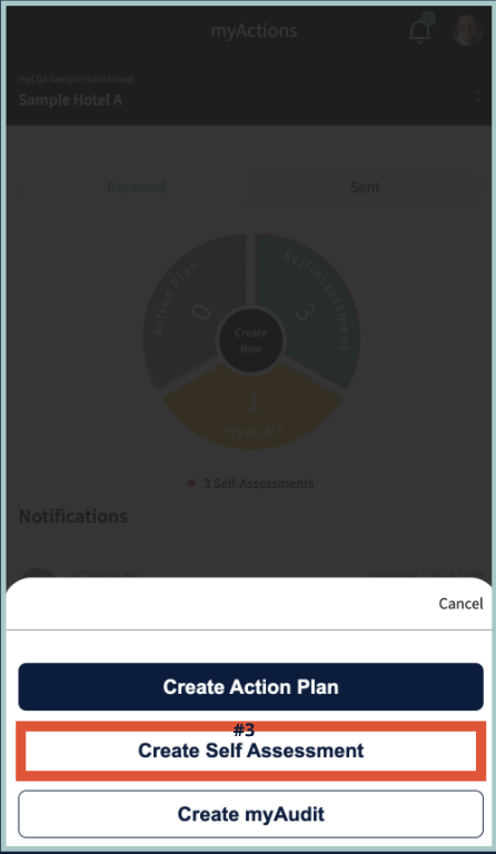 In order to create self-assessment in myLQA (mobile app), your hotel will require an active myLQA license which has been assigned to you as a user, please reach out to your admin user for this access.