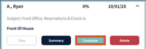 Select a Self Assessment and click on the Complete button to open an assessment and continue working.