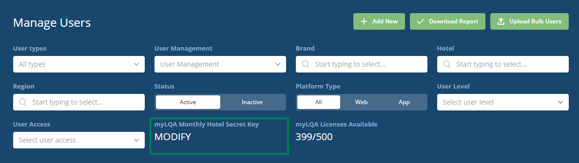 - Hotel Secret Key (updated monthly under in the Manage Users tab on the dashboard)